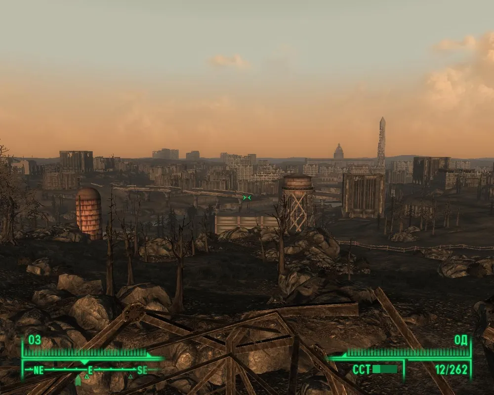 Вот она, Пустошь! Бескрайние просторы, развалины, радиактивные лужи, рейдеры... Выглядит впечатляюще! Да еще пип-бой и радио какое-то словил. "Новости Галактики", знакомое что-то. И ди-джей там Тридогнайт. Луч света в этом темном мире. Стоп! Это что? Сигнал о бедствии? О каком-то Питтсбурге. Схожу проверю потом. Опять стоп! А Это еще что? Приглашение спалавать в "Точку Обзора"? Ну что же, потом сплаваю, мне ведь отца надо все-таки отыскать. *На пол пути в Мегатонну* Снова сигнал! На этот раз от изгоев. Что-то не ладное, будто в Пустоши вся атмосфера пронизана радио сигналами. По карте до каждого довольно далеко идти, поэтому сначала пройдусь в Мегатонну, поищу отца. В городе встречает шериф. А вообще, такой город, как Мегатонна заслуживает пару строк. Исследуя игру вдоль и поперек ваш покорный слуга отметил, что Мегатонна, пожалуй, единственный город в игре, заслуживающий звания города. Все остальные поселения, не больше, чем поселения или, возможно, хутора. Ривет-сити хоть и большой, но узкие коридоры не дают разгуляться. Большой Город на самом деле никакой не большой. В Литл-Лэмплайте живут только дети, никакой инфраструктуры там нет. Но вернемся к Мегатонне. Не даром именно ее нам показывали перед выходом игры в ролике. Очень атмосферное, ржавое, казалось бы еще чуть-чуть ― и город развалится. А ведь построили город вокруг невзорвавшейся атомной бомбы. Бомбу эту можно и взорвать, и обезвредить. Как по мне, так Мегатонна ― это воплощение Пустоши в виде города. Именно так и должен выглядеть город после ядерной зимы.