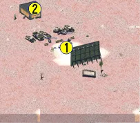 1 – место появления. 2 – разрушенная постройка.