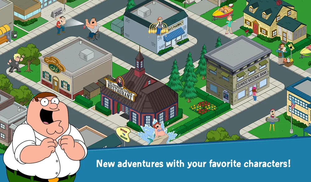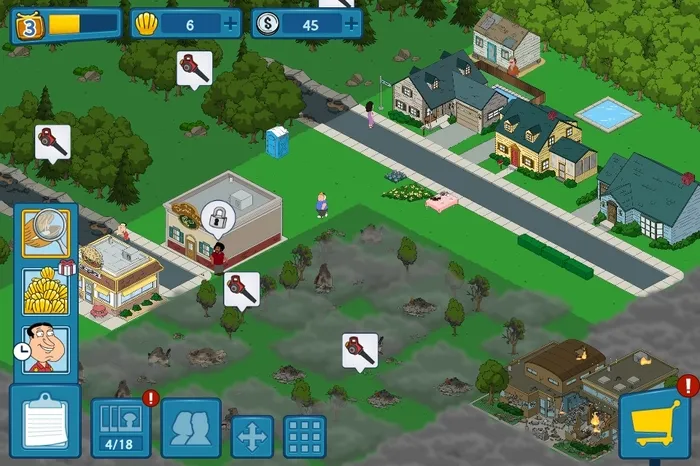 «Family Guy» представляет собой очередную вариацию фермы, в довольно стильной оболочке. Нам предстоит выполнять различные задания, и прихоти персонажей, которые постоянно что-то хотят. По началу, игрокам доступен лишь малый отрезок всей карты, который со временем будет расширяться. Цель игры – открыть весь Куахог и собрать всех персонажей. С первых же секунд, видно, что разработчики «Family Guy» серьезно отнеслись к созданию игры по мотивам одноименного сериала. Графика выполнена в лучших традициях «Грифинов», а диалоги все так же наполнены аморальностью и огромной долей сарказма.