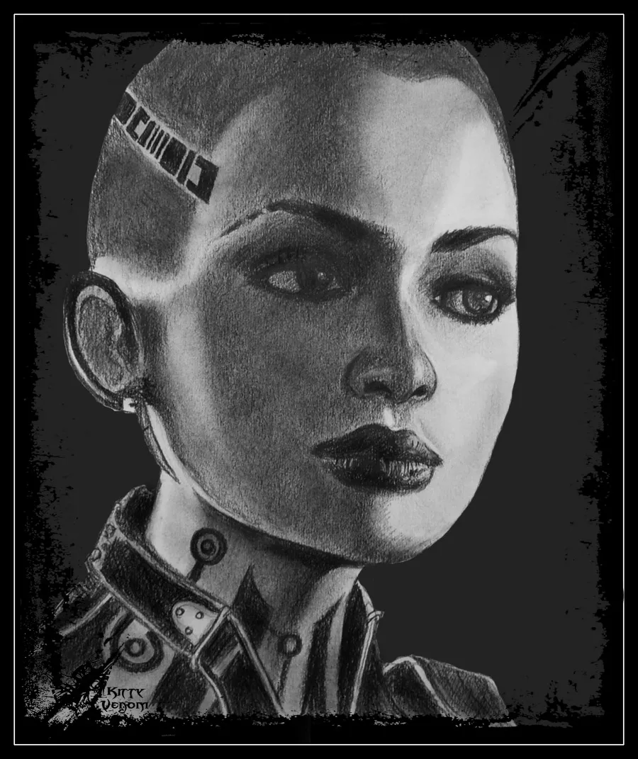 К этому моменту большая часть работы уже готова, а саму одежду рисовать все же проще, чем строить светотенью лицо. Помните, что татуировки у нас - одни из самых темных элементов картинки, и не забывайте про то, что на коже шеи у нас тоже должна быть светотень. Я растушевываю тени на одежде, немного затемняю глаза, еще раз прохожусь по всей картинке, добавляя тени и штрихи. При желании вы можете покрыть рисунок специальным фиксатором, который не дает размазываться карандашу. Либо просто хранить рисунки в отдельной папке в файлах.