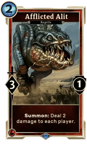 Титул можно получить, играя колодой с атрибутом «Мощь» (красной). Когда у вас и у противника остается по одному хиту, выводите в поле Afflicted Alit.