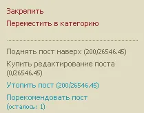 Поднять свой пост выше остальных - сообщение поднимается выше всех остальных (кроме закрепленного наместником). Как только появляется новое сообщение, поднятое сообщение начинает опускаться вниз. Расход энергии: 200, лимит: 7 уровень.