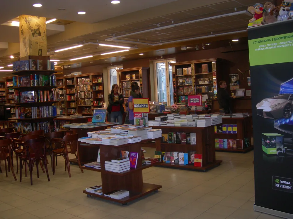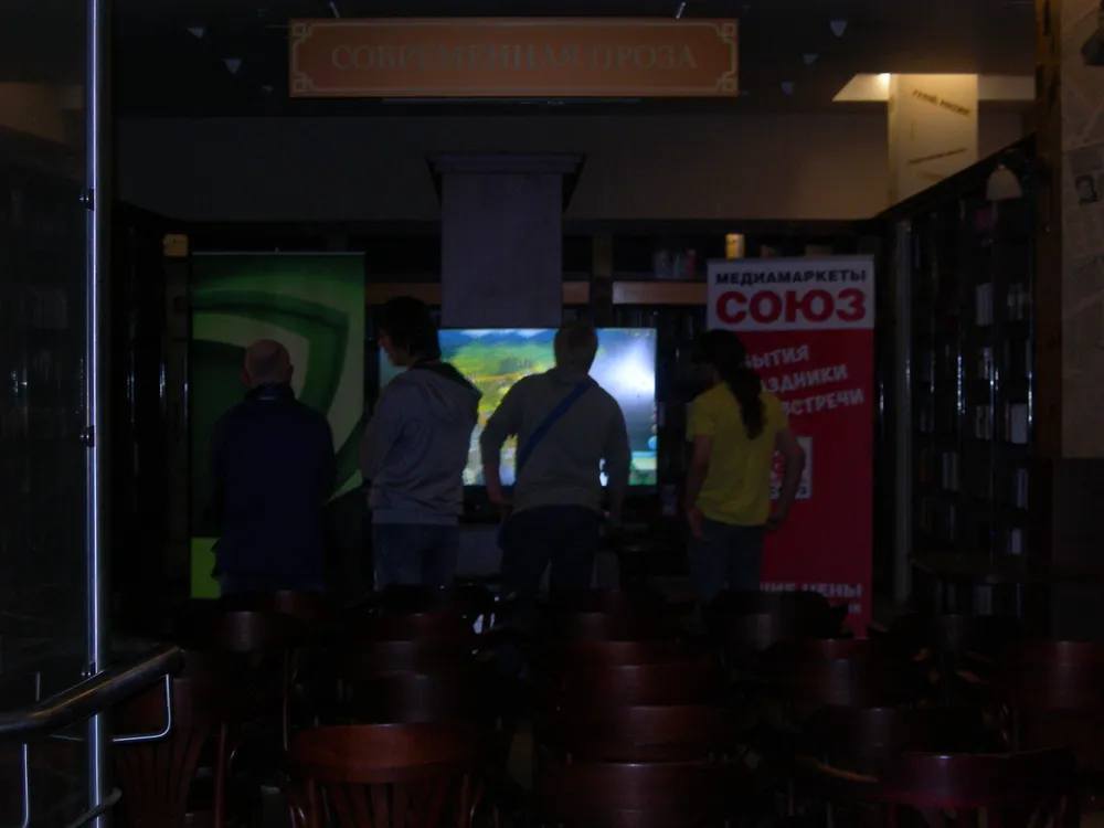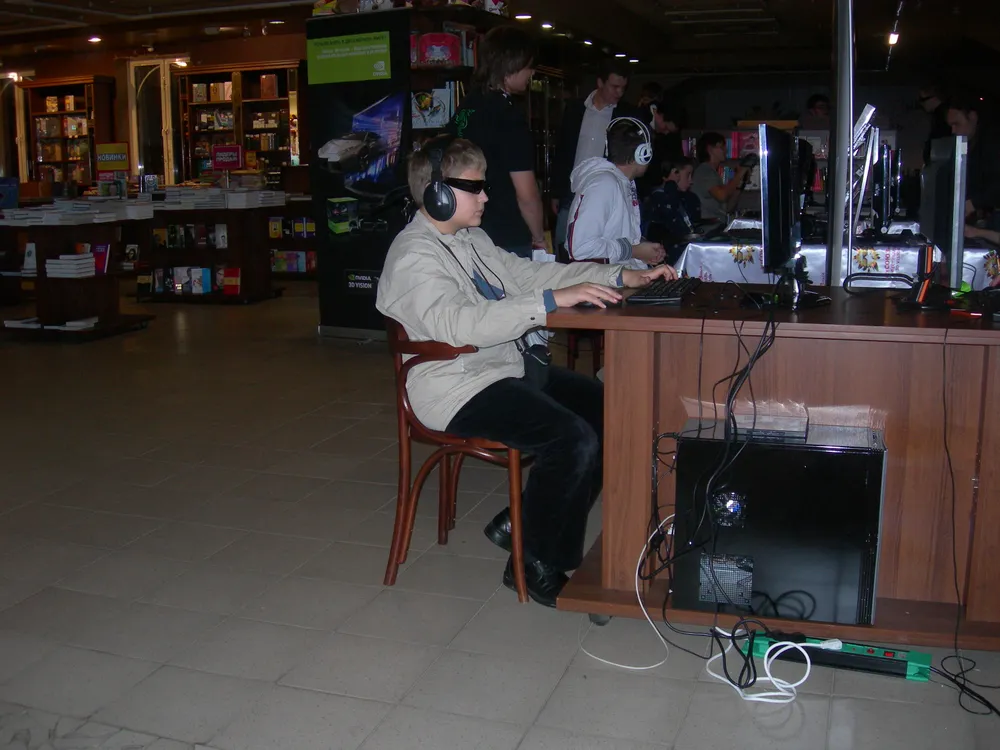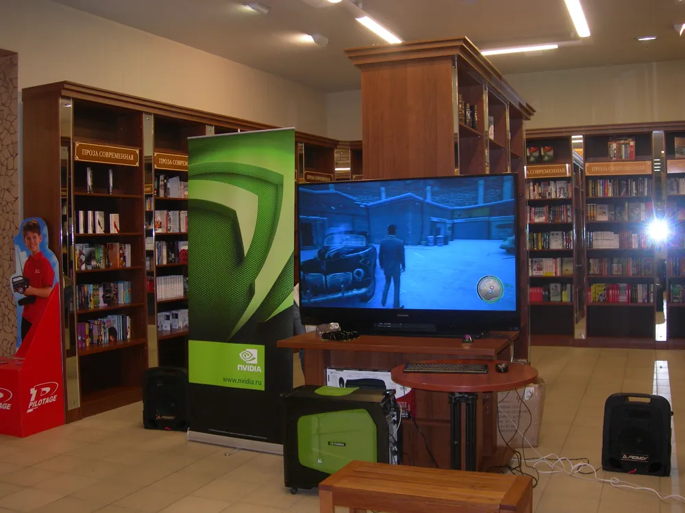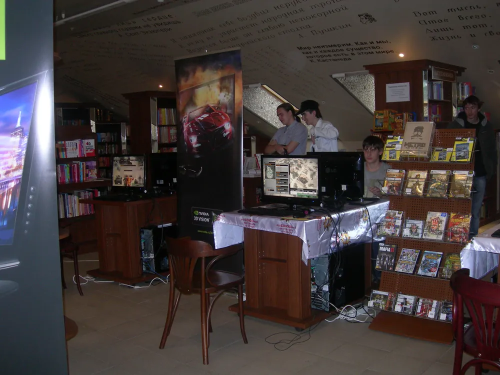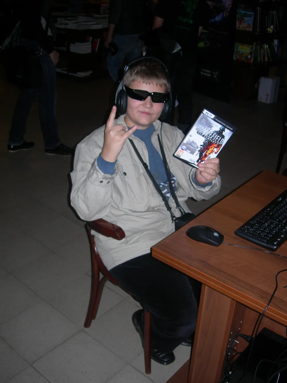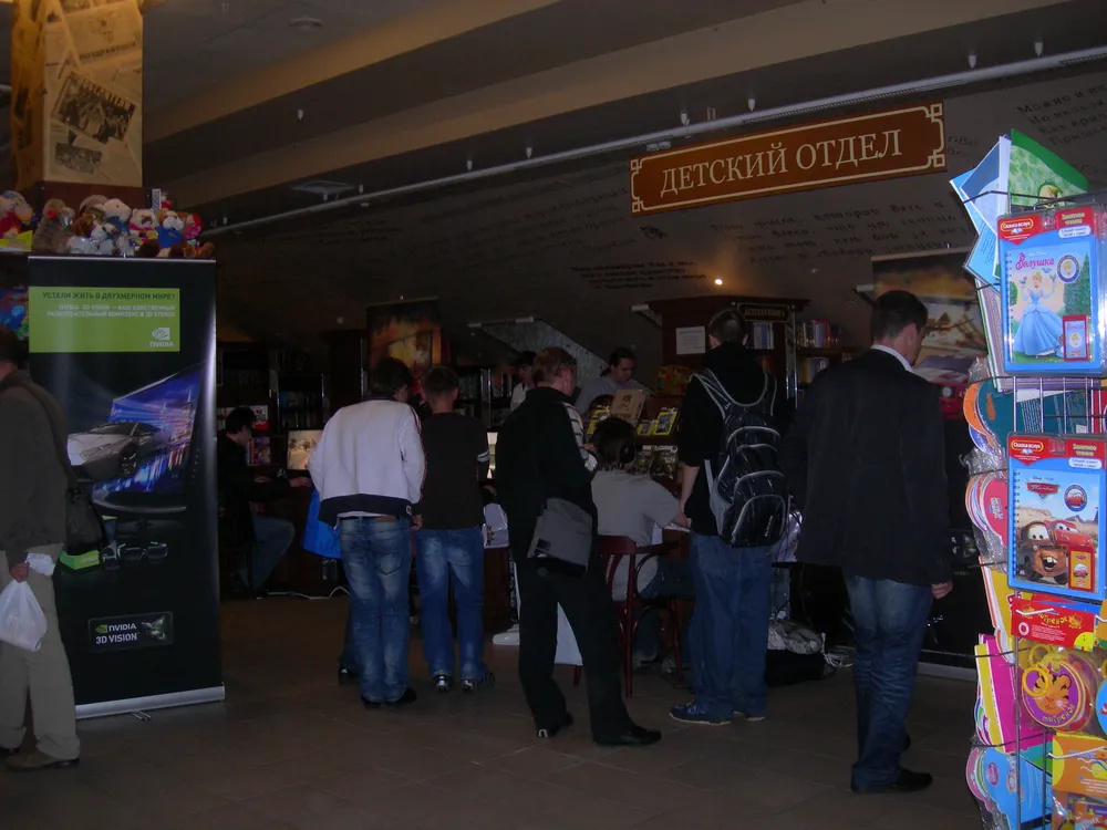 К счастью всё было хорошо 23 сентября! На третьем этаже нас радостно встретил мужчина в чёрном пиджаке и привлекательная дама за столиком. Они дали нам билет и предложили сыграть в Mafia 2 в 3D, на что я охотно согласился. К сожалению в очках долго не поиграешь(напряжение на глаза), и поэтому нам пришлось читать книги. Кстати очень интерсно! За час я прочитал передовую СтарКрафт, ВарКрафт, комикс про то что курить это не круто и не много Рассказы о Родине Дмитрия Глуховского. Наконец пришла пора розыгрышей и презинтацей, на которох я выиграл комплект пред.заказа Мафии 2, который у меня уже есть и Greaser pack. В турнире по Баттлфилду 2 тоже конечно же продул. Зато получил кучу удовольствия.