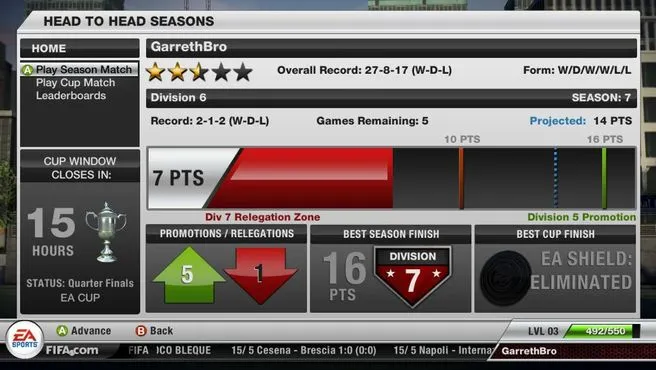 Самое главное в этом режиме – это вы, ваш сезон и ваш дивизион. Всего в игре 10 дивизионов, а в каждом сезоне 10 матчей, в ходе которых вы боретесь за выживание или за переход в более высокую лигу. За победу начисляется 3 очка, за ничью – 1, а каждое поражение значительно осложняет вашу задачу.