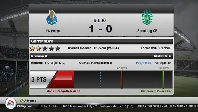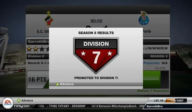 Кроме того, мы постарались сделать путь в высший дивизион более сбалансированным. В 10-м дивизионе, с которого все начинают, для перехода в 9-й нужно набрать всего 12 очков. Но по мере того как вы поднимаетесь выше, ситуация усложняется: увеличивается количество очков, необходимое для выхода на новый уровень. Для лучших игроков, тех, кто сумеет попасть в 1-й дивизион, цель – занять первое место в таблице и выиграть чемпионат. Время от времени ваши последние результаты и ход вашего сезона в целом будут обсуждать комментаторы.