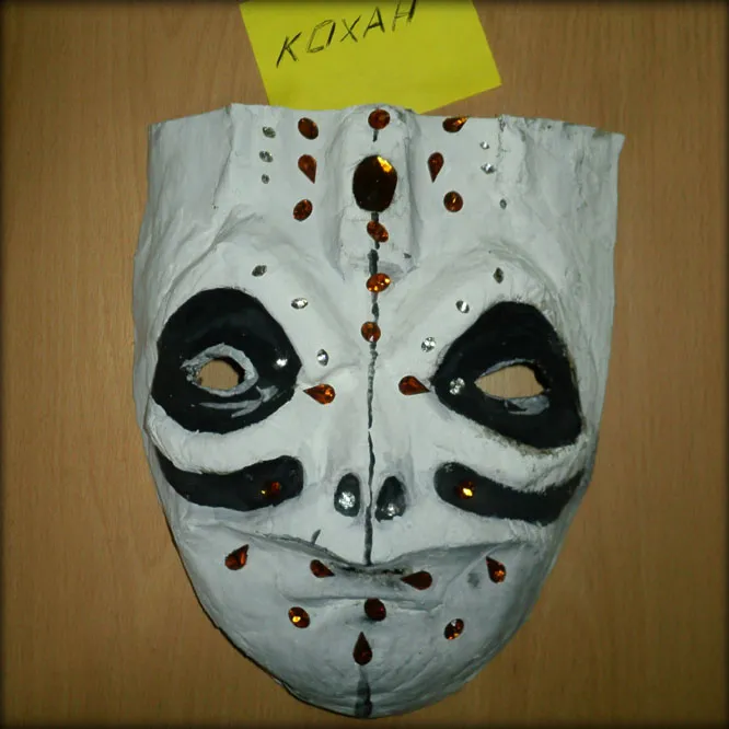 Масочка делалась специально для Пуфней и их песни song4miss (смотреть ниже). В отличии от предыдущих делалась без мастер-формы, то есть обьём собирался из кусочков бумаге прямо в "воздухе". После записи приобрела ужасный вид и деформации.