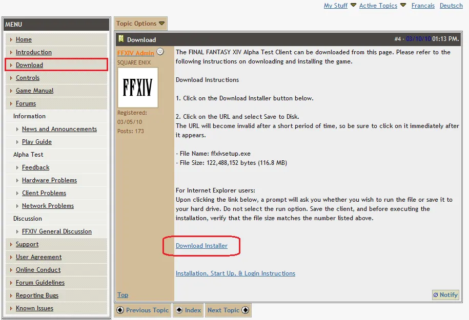 Итак, в день n я решил подать заявочку на участие в бета тесте Final Fantasy XIV, скажу сразу ни в одну часть Final Fantasy до этого я не играл, только лишь имел малейшее представление о франчайзе. Не ждал собственно, что мою заявку на бета тест рассмотрят и одобрят, но вот в день n2 пришло письмо на эл.почту о допуске до бета теста, чему я был несказанно рад. Перевод содержания письма вы можете лицезреть здесь. 10 этап у меня не «покатил», не мог залогиниться на сайте тестеров, ну и собственно забил на это дело. К 11 этапу волею судеб я смог «пробиться» на сайт, первым делом, разумеется, начал искать заветную ссылочку Download.