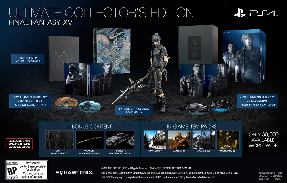 У игры будет два специальных издания. В издание Deluxe войдёт игра и фильм Kingsglaive: Final Fantasy. Издание Ultimate Collector будет выпущено тиражом 30000 экземляров, в нём будут: игра и фильм Kingsglaive: Final Fantasy, аниме Brotherhood, книга с иллюстрациями в твёрдом переплёте, фигурка Ноктиса, дополнительный загружаемый внутриигровой контент.