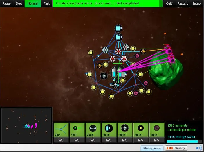 Всегда думали, что шахтером быть скучно? А если в космосе? А если хреновы тучи врагов? Попробуйте The Space Game: Missions - вам обязательно понравится. Аскетичная графика, не менее аскетичный геймплей и в итоге - затягивает не хуже Homeworld. Разнообразые миссии(копанием дело, понятно, не ограничится), развеселые к ним комментарии и та самая душа космостратегий девяностых.