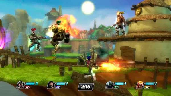 Что до арен – это самая повально восхваляемая составляющая Звезд PlayStation. На данный момент их насчитывается 14 штук и приехали они, как и герои, как и предметы на поле боя, из тех же игр. Они живут своей собственной жизнью, изменяясь в ходе игры – разрушаясь или, например, наоборот – достраиваясь. Иногда в процессе игры вы замечаете, как на арену врываются непрошенные гости: так, например, толпу патапонов разгоняет одним своим видом не пойми откуда взявшийся на арене Аид из God of War, или ОБЧР из Killzone неожиданно возникает на задворках арены PaRappa the Rapper и начинает крушить все подряд. Конечно, игра заранее предупреждает игроков, что из конкретной зоны на поле боя лучше убраться с максимально возможной скоростью, и даже дает какое-то время, чтобы успеть сделать ноги. Кто не успеет убраться из-под горячей руки Куколки из Twisted Metal – тот сам себе злобный Буратино.