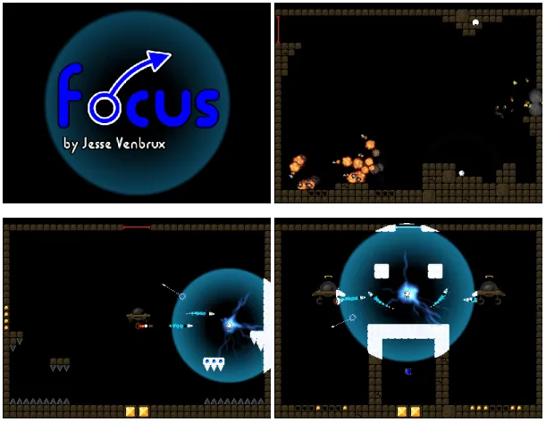 Это 2D платформер с телепортированием, которое называется "режим концентрации" (Focus Mode). Вы будете пробиваться к свободе через мир таинственных пещер, забитых не очень дружелюбными летающими роботами. В вашем "поле концентрации" (Focus Field) всё замедляется, позволяя игроку легко уворачиваться от ракет и прочих предметов, к которым не стоит прикасаться.