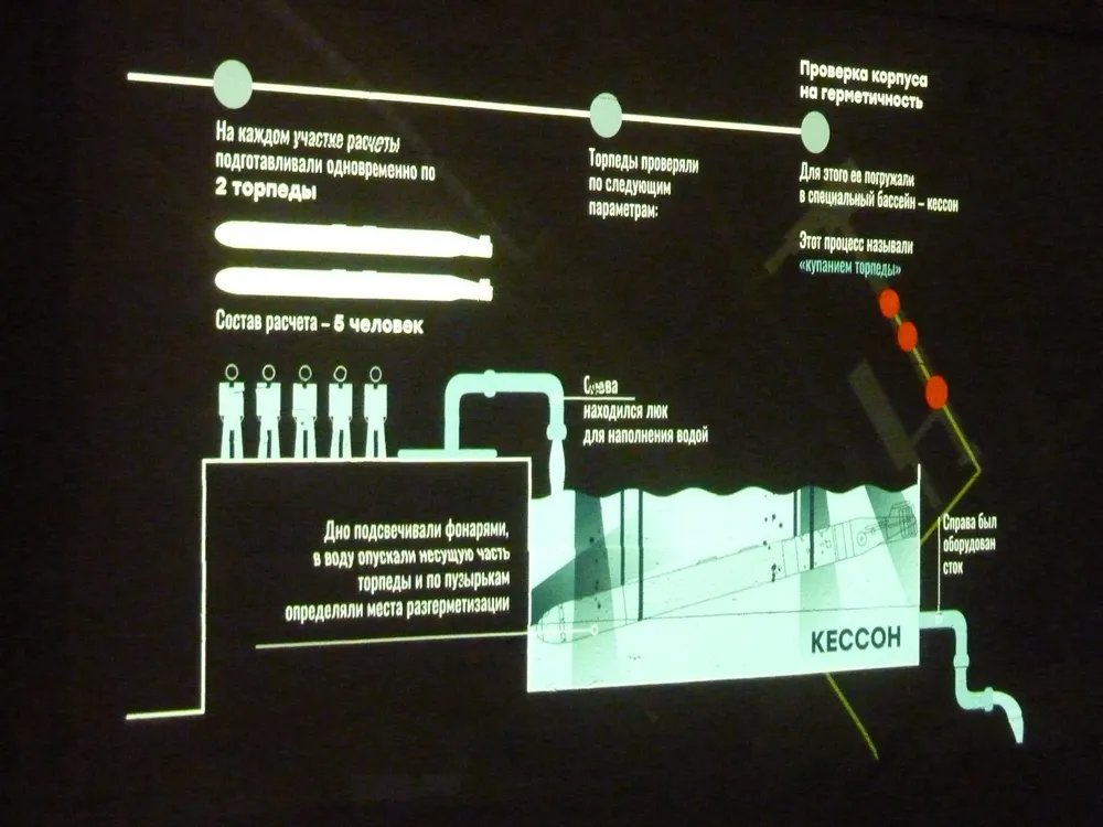 Также из примечательного. В потернах выставлены небольшие модели подлодок с краткой историей; мины и торпеды, использовавшиеся в подводном флоте.