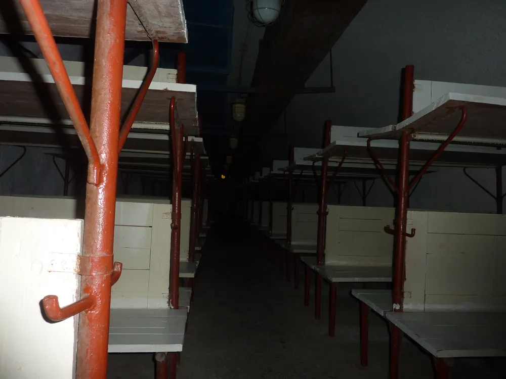 Самая запомнившаяся часть экскурсии проходила непосредственно в зале для размещения укрываемых. Там выставлены несколько двухэтажных нар, экскурсанты садятся на них, гид располагается за столом перед дверью, закрывает её. На минутку гаснет свет, включённым остаётся лишь "аварийное освещение", гид умолкает, наступает тишина. Ощущения непередаваемые.