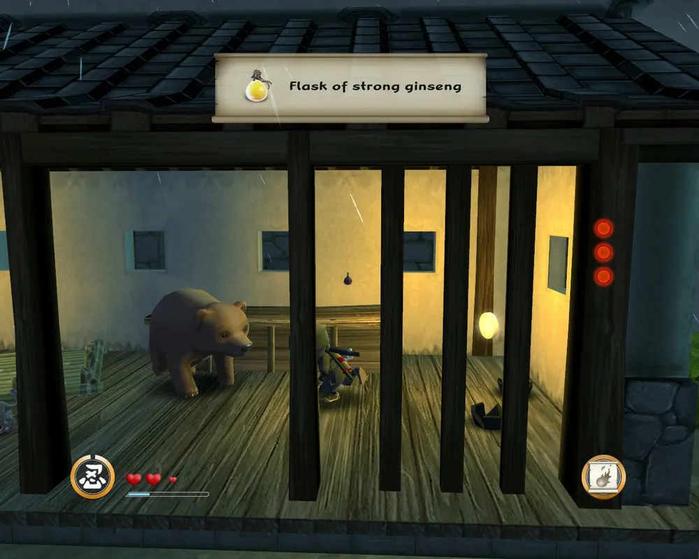 Игра начинается с коротенького обучения, где нам показывают почти все, что умеет делать малыш ниндзя. Начинаем с простого — бегаем, крутим камерой. Даже хочется возразить: «Ну что я вам, ума лишенный?» — до того все очевидно и привычно. Дальше мы подходим к горе, учимся прыгать от стены к стене, карабкаться по уступам, бегать по отвесным скалам… Сильно напоминает «Принца Персии» (не беспокойтесь, постоянно куда-то лезть не придется). Забираемся, поднимаем спрятанный приз-бонус — их мы будем коллекционировать всю игру. В заключительной части обучения мы сражаемся с несколькими противниками, которые оставляют после себя светящиеся «останки» — все как в старые добрые времена. Что в сейчас, что десять лет назад (например, в Bugs Bunny: Lost in Time) принципы аркадных боевиков ничуть не изменились — убивайте врагов, собирайте выпадающие из них «плюшки», ищите скрытые бонусы и будет вам благодать и вселенская радость. В конце уровня (или нескольких) встретитесь с боссом, получите от него «леща» (или он получит, как повезет).