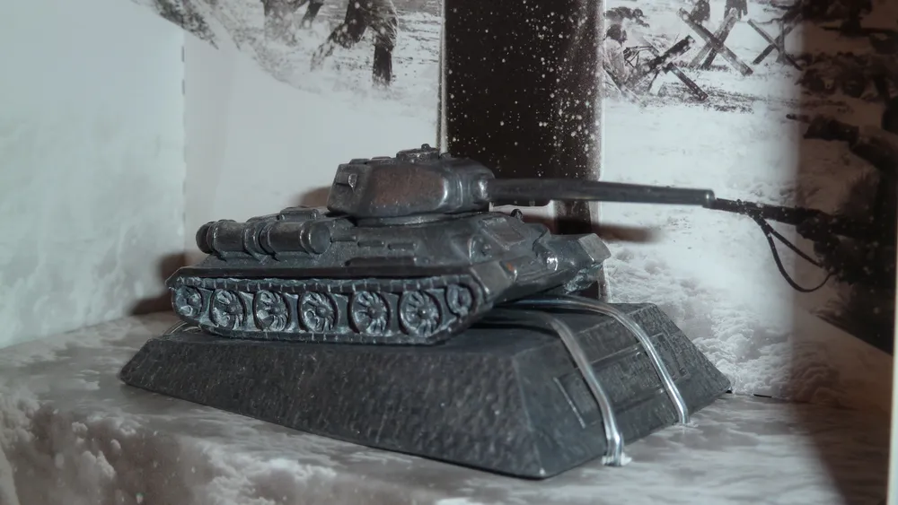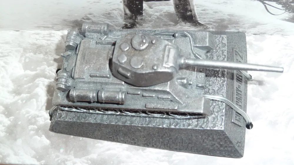 И наконец самое интересное - металлическая модель танка. Сделана она из хорошего материала, небольшого размера, но красивая и увесистая. На полочку можно поставить и без снятия с картонки - выглядеть будет все равно красиво.