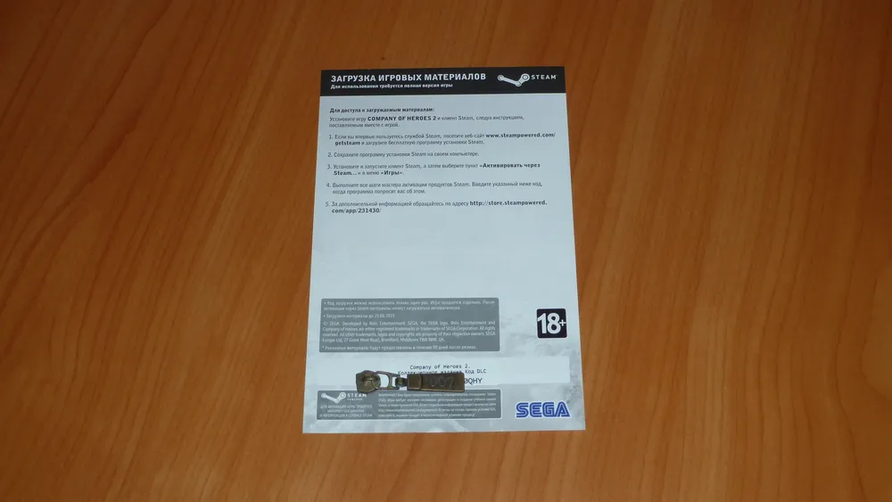 Еще в двд боксе есть бумажка, на которой наклеен ключик на активация DLC для Company of Heroes 2. В составе DLC: Набор камуфляжа, эксклюзивная плашка, командующие, абонемент командующего и театр военных действий (подробнее на фото).