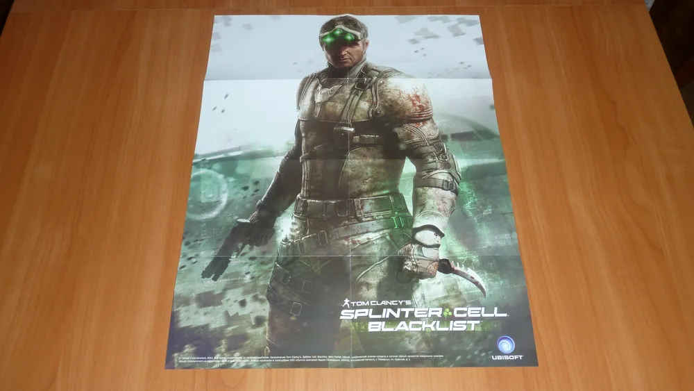 Затем идет стандартная часть многих изданий и комплектов предварительных заказов - плакат. В КПЗ Splinter Cell: Blacklist он двухсторонний. С одной стороны можно увидеть карту РФ, где и будет проходить действие игры. С другой стороны изображен сам Сэм Фишер.