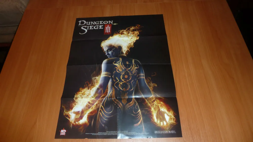 Далее идёт двухсторонний плакат, сделанный из плотной глянцевой бумаги. На обеих сторонах изображены герои из Dungeon Siege III. На первой - огненная и мрачная красавица Анджали, на второй - светлая Катарина.