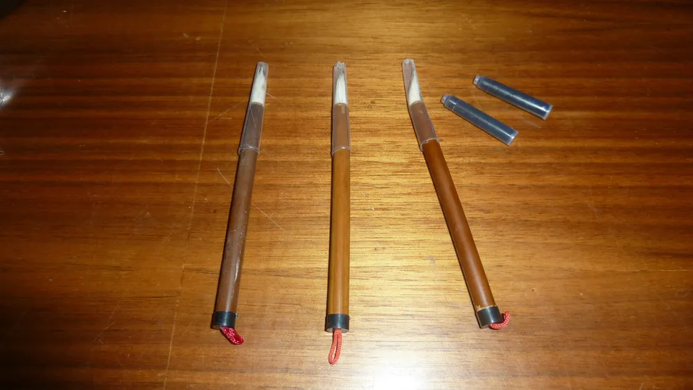 Открываем коробку. Сверху лежит самая главная вещь в коллекционке ,то, из-за чего многие её и берут - набор для каллиграфического письма. В наборе три кисточки и два тюбика с чернилами. Кисточки красивые, хвостики твёрдые. В итоге можно сказать: обычные кисточки, которые можно купить в любом специальном магазине. Также в упаковке лежит картонка с логотипом Fall of the Samurai.