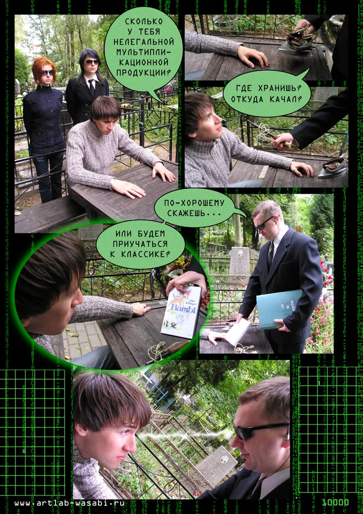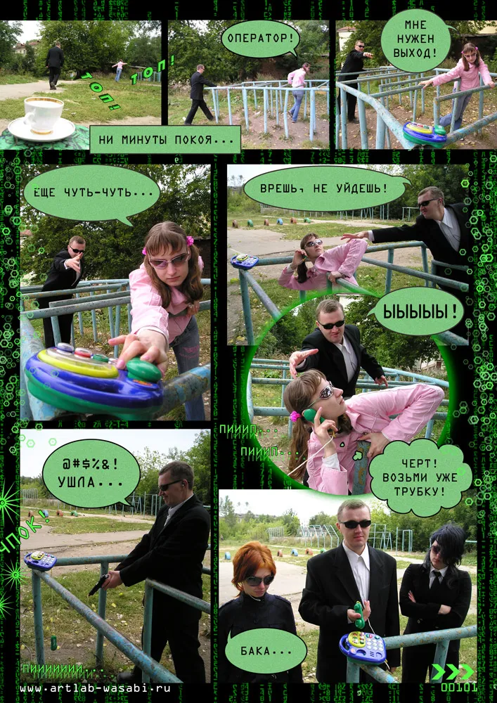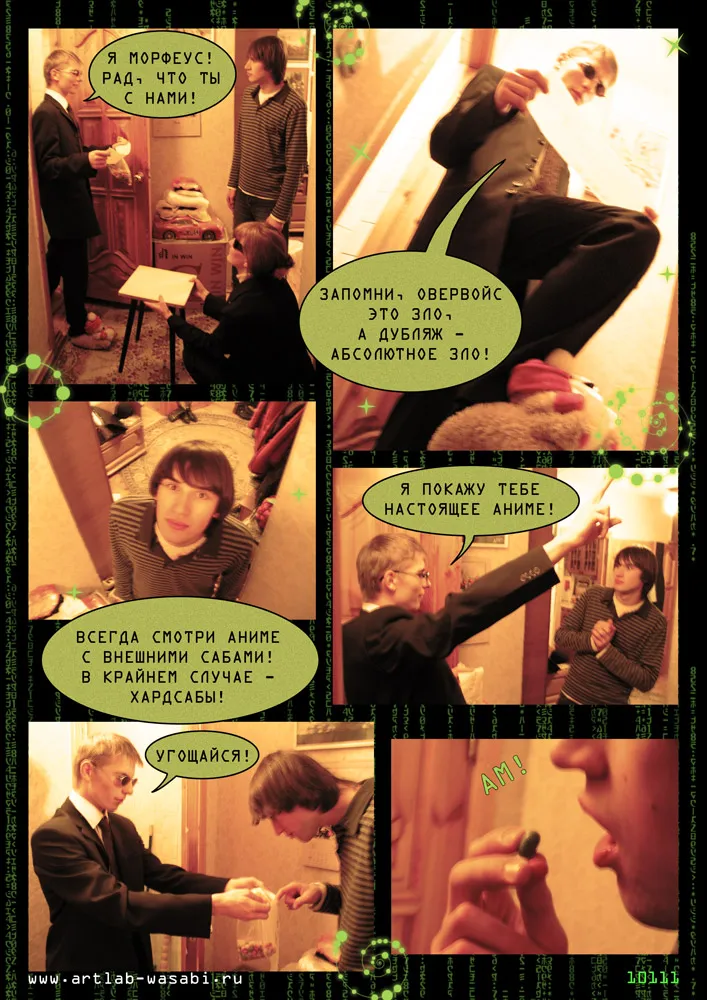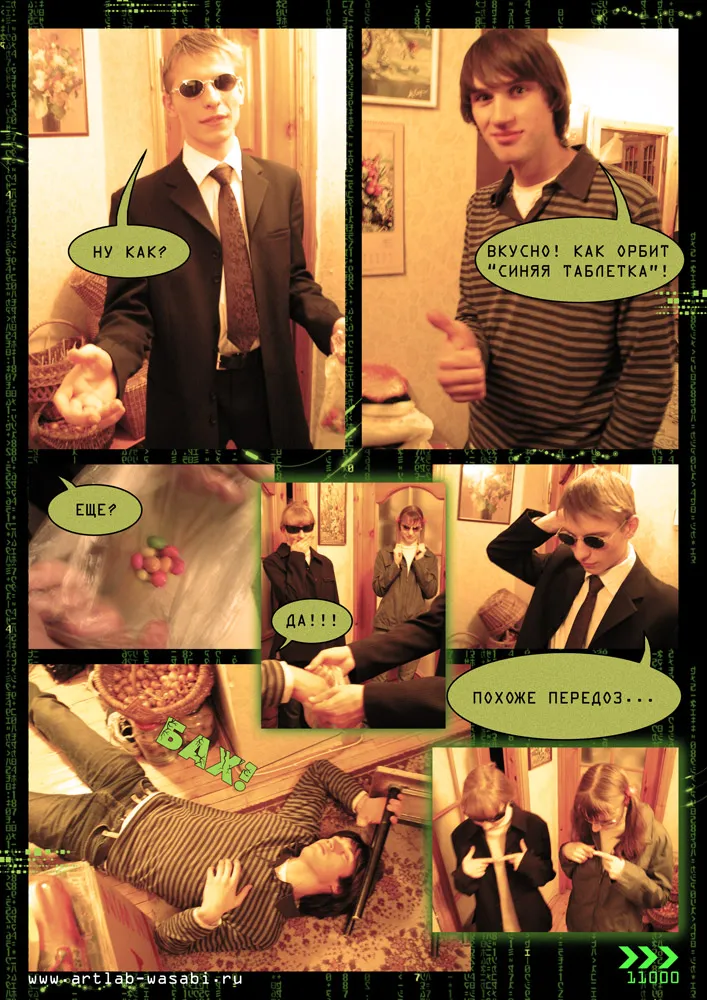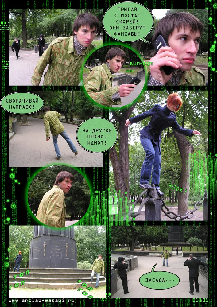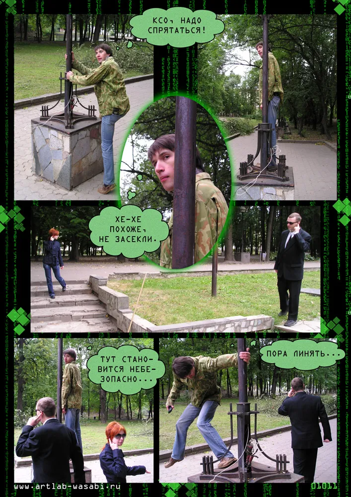 Мое участие - сценарий, режиссура, камера, монтаж и небольшая роль Архитектора. Конечно, всё это было сделано не в одиночку, а вместе с Yo-dzun и Tomo, так что авторство у фотокомикса тройное.