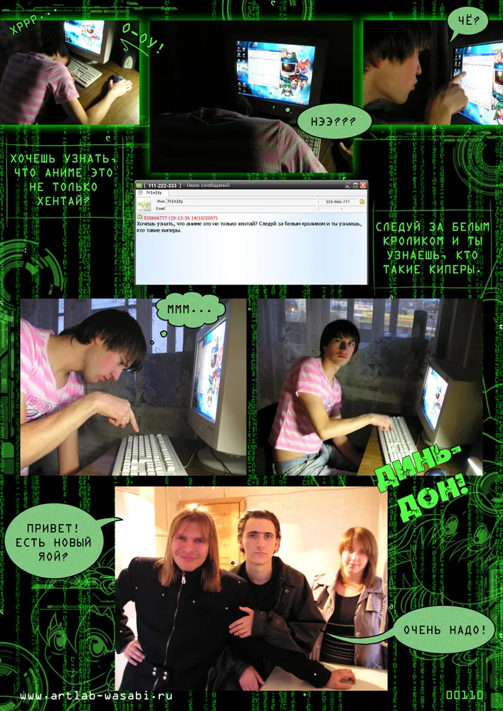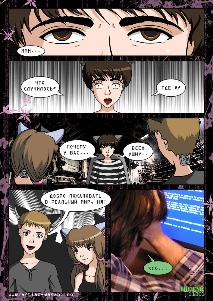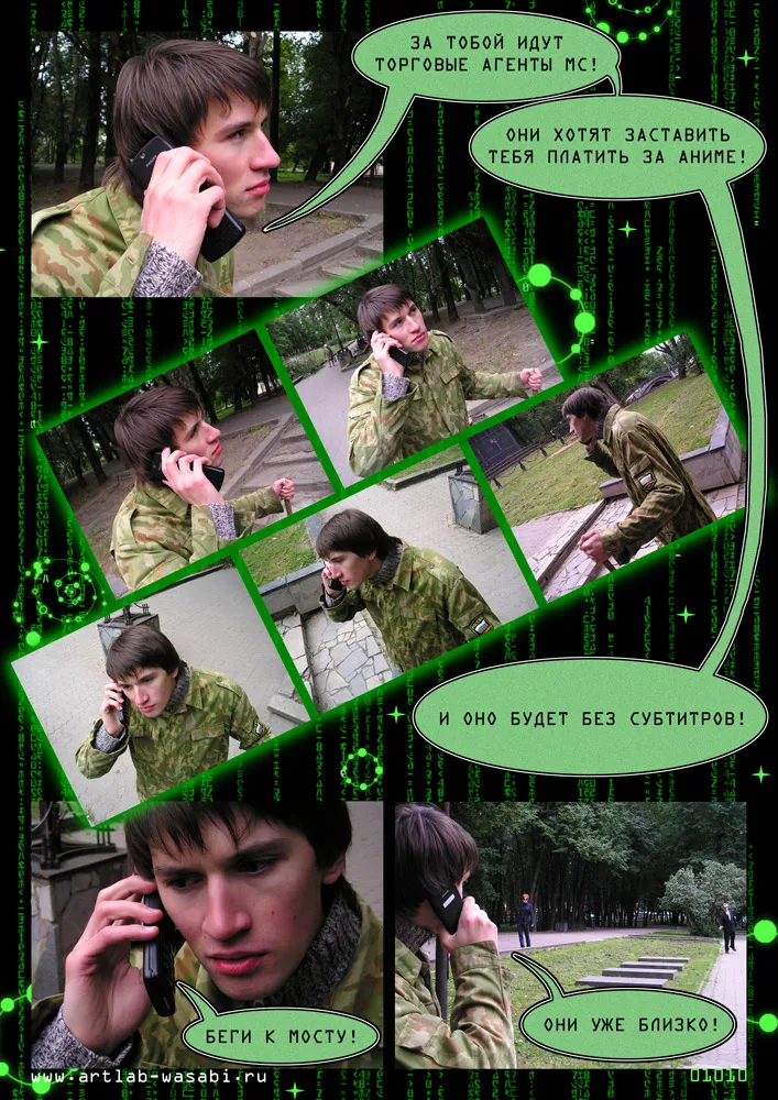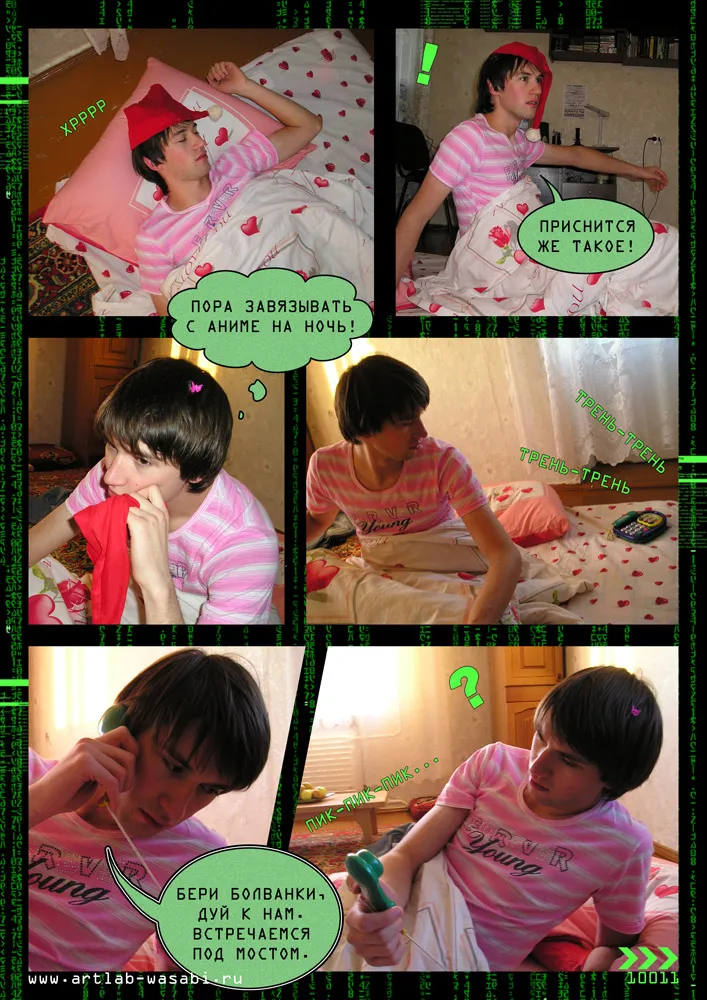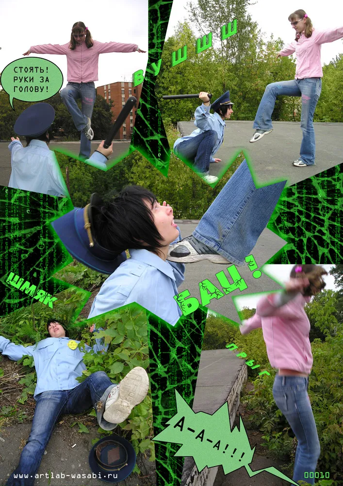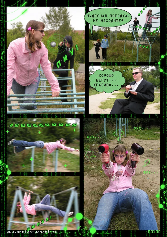 Мое участие - сценарий, режиссура, камера, монтаж и небольшая роль Архитектора. Конечно, всё это было сделано не в одиночку, а вместе с Yo-dzun и Tomo, так что авторство у фотокомикса тройное.