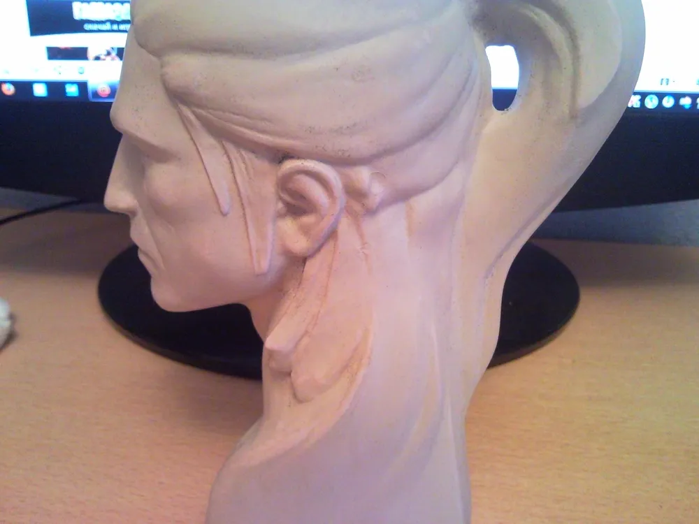 Небольшой, но тяжелый, качественный. Как и коробку, не стыдно поставить на видное место. Бюст сделан "под мрамор". Возможны сколы, от этого никуда не деться. В общем хорошая вещь.