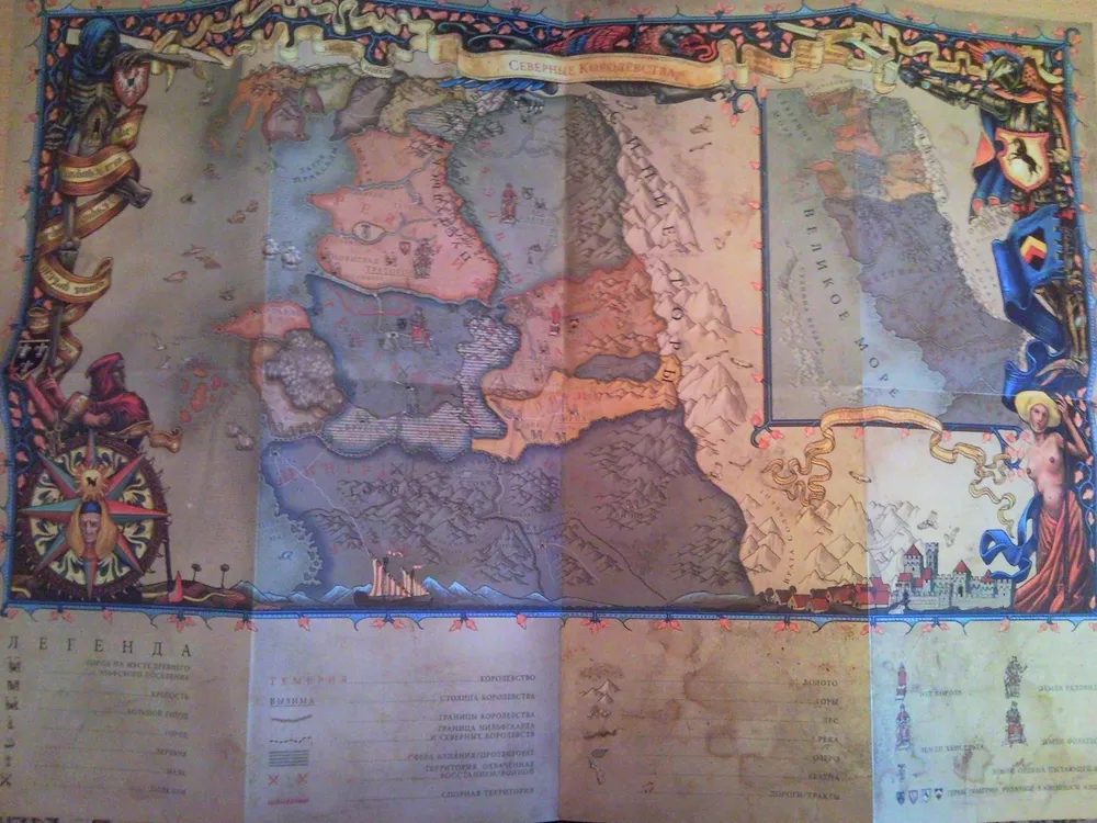 Карта. Понравилась, полиграфия и качество бумаги на высоте. Надо бы только проверить читабельность "при свечах", что гарантировали на странице предзаказа The Witcher. Двухсторонняя: Долина Понтара и Северные Королевства.