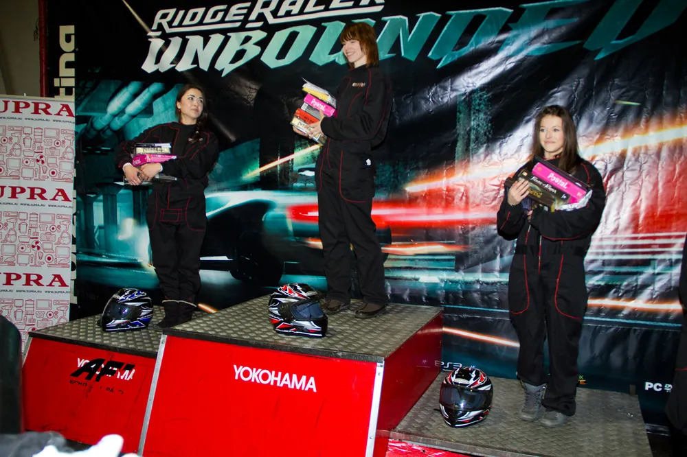 Гонка длилась 10 минут, к моему удивлению там шла большая нагрузка на руки(или может это я так вцепилась в руль? -DD Но после заезда руки у меня тряслись, как у алкоголика, подшлемник на бикрень, растрепаный и очень довольный вид. А порадоваться было чему! Я заняла первое место. Учитывалось общее время прохождения трассы. Ну тут я конечно возрадовалась!! Мало того, что картинг сам по себе очень понравился, так еще и победа. Тада да да! Нас выстроили для награждения. Там был специальный подиум со ступеньками I II III место. Прямо формула 1, только без обливаний шампанским :)