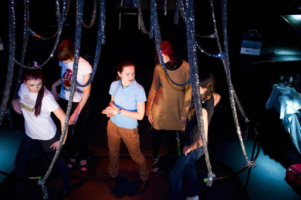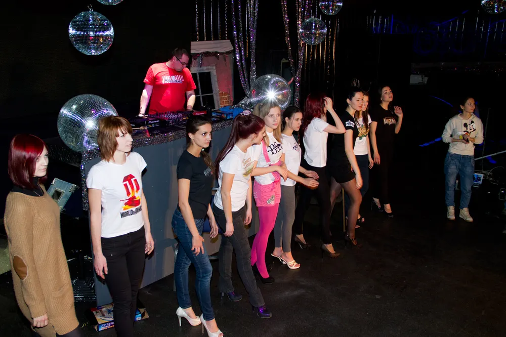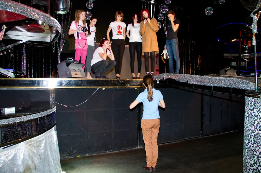 Впечатлений масса! Утром участницы конкурса встретились в клубе "Бархат" для первой репитиции. Первое, что всех нас сразило - сцена. Она очень необычна - высокая, с навесным мостиком, пародией ступенек, уклоном. Конечно ходить по такой сложно. Вы ведь уже догадались, что дефиле без высоких каблуков не дефиле? С нами работала хореограф Маша, не буду раскрывать секретов, что именно мы делали, ведь все это вы увидите в финале, однако скажу, что в итоге все были уставшие, голодные, но довольные собой! О клубе скажу, что он весьма необычный, но интересный. Лучшие ракурсы будут открываться диджею(если он там будет :)) и конечно же жюри, которых разместят на балконе. Высоко сижу - далеко гляжу.