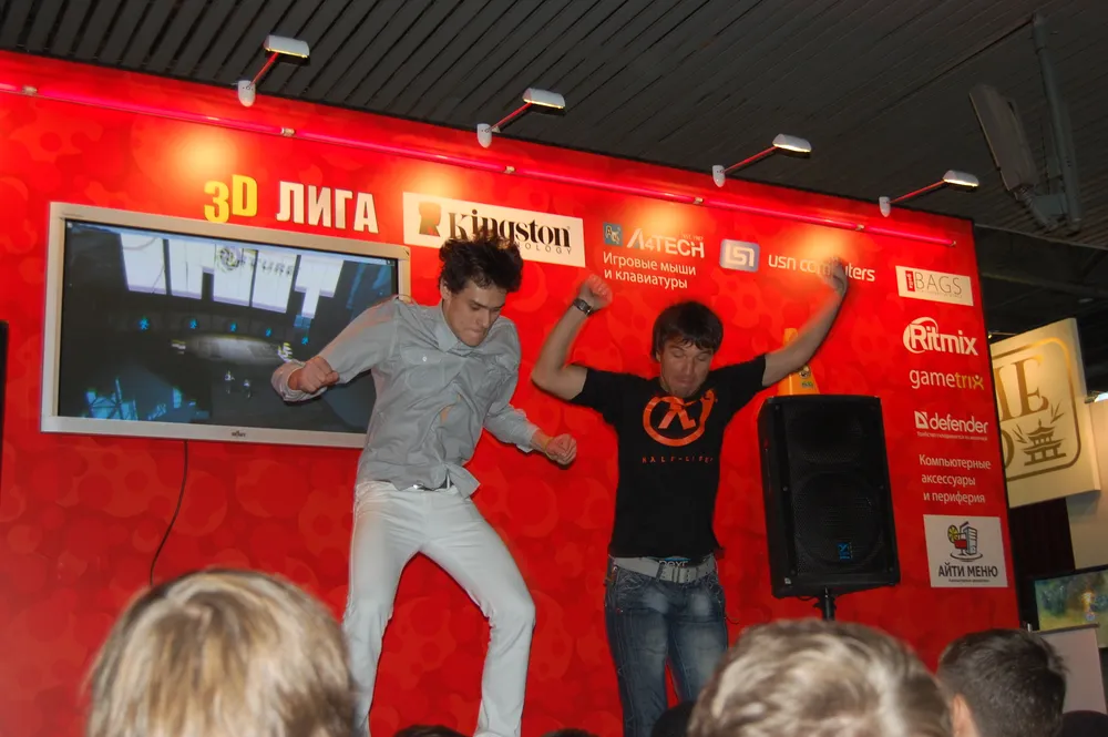 Кстати, у нас в команде были шикарные девушки, которые время от времени выходили на сцену и устраивали зажигательные денц-денц-денц :)