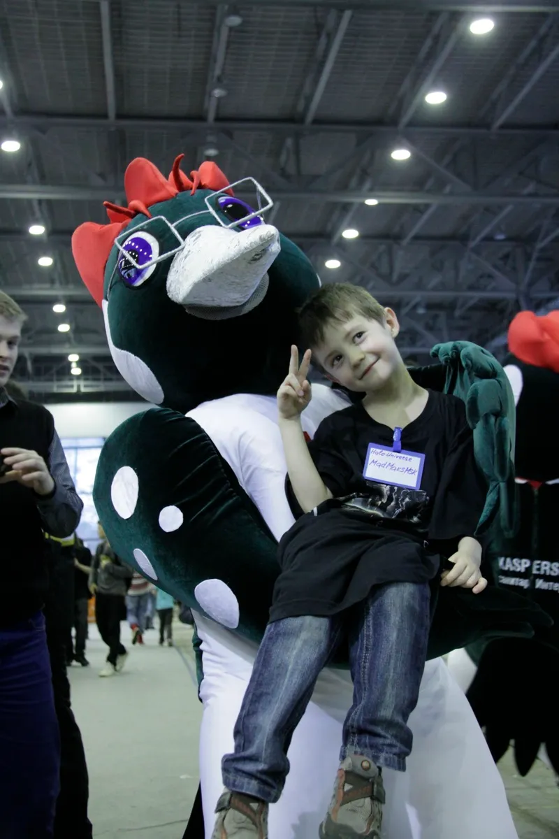 Он с куклой по всей выставки ходил, я его трижды видел.