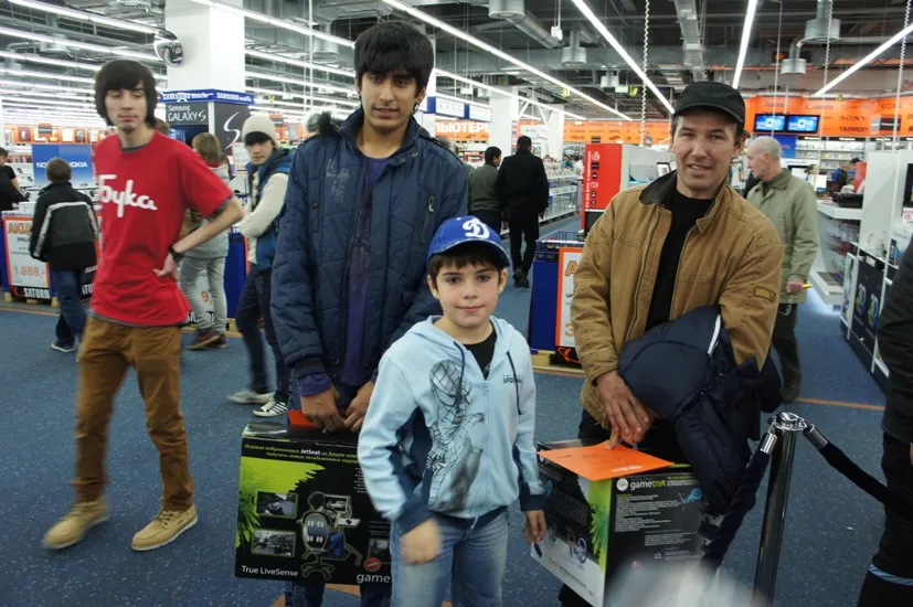 Это победители. Номан, слева, занял первое место и заслужил вибронакидку от Gametrix. Дмитрий, по центру, уступил около секунды на последних виражах и занял второе место, забрав с собой игровой руль от Gametrix. Папа Дмитрия, справа, образец выдержки - было видно, что болеет за своего парня всей душой, но вёл себя крайне сдержано.