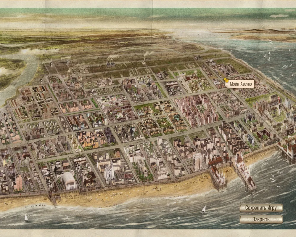 И вот перед нами раскинулся молодой, но стремительно развивающийся Атлантик-сити. Город, погрязший в "сухом законе", повальном бандитизме и тотальной продажности копов... Город мечты. Раскинулся, кстати, город в прямом смысле — картой.