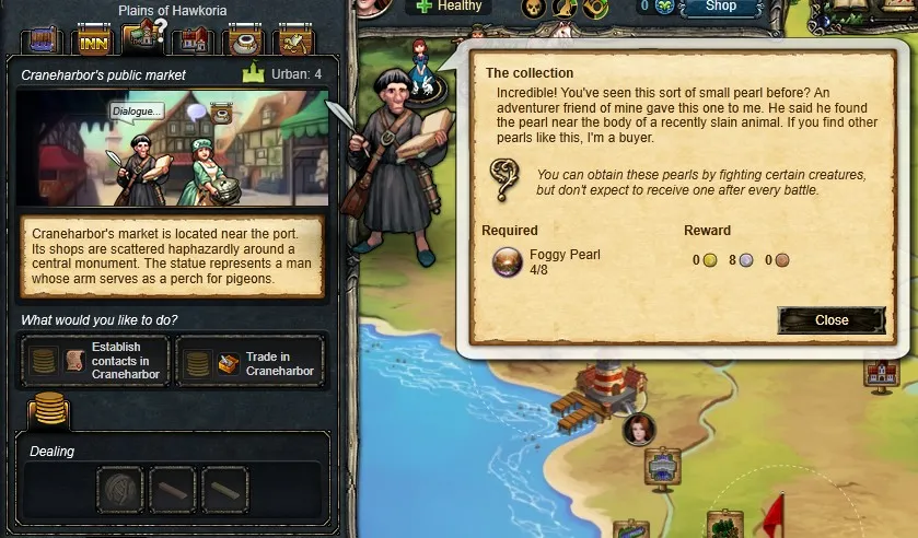 Например, «Принеси голову медведя» - стандартное задание для РПГ. Но только не здесь. Сначала нужно прокачать охоту до нужного уровня. Где качать? На чем быстрей качать? Дальше нужно найти лес. Название есть, да где его искать? На карте не отмечено. Начинаем думать логически, находим безымянный лес из нескольких доступных и – ура – это он. Приходим и понимаем, что исследовать его нельзя пока что, потому что низкий уровень умения «Исследование». Как качать исследование? Как его улучшить? Наводим на умение во вкладке с персонажем, видим, что улучшить можно с помощью пони в качестве спутника. Находим в соседнем лесу пони и понимаем, что не можем приручить пони без овса. Начинаешь вспоминать, в каком магазине видел овес. И так далее и тому подобное. Добавьте сюда то, что по игре еще нет внятной вики, и форумы только начали наполняться ответами. Но, к счастью…