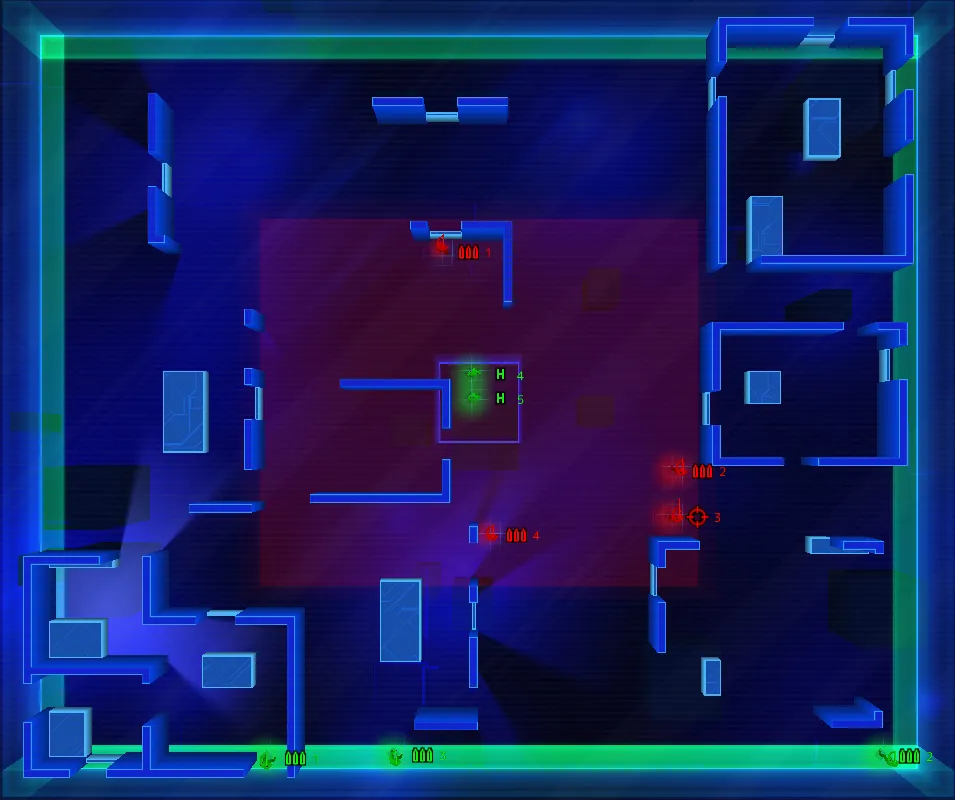 Перед первым ходом "Террористы" aka T размещают своих юнитов в красной зоне с заложниками, а "Контры" aka CT могут разместить своих юнитов в зеленой зоне по краям карты. После первого хода СТ могут делать заложникам вейпоинты и т.п, цель - вывести в зеленую зону за край карты. Делать план заложникам можно только один, т.е. как только они покидают красную зону им давать указания уже нельзя, потому нужно рассчитать чтобы они "спаслись" за одни ход. В красной зоне перемещать их можно сколько угодно. Обычно играется 8 ходов, СТ побеждает если убивает всех оппонентов или выводит хотя бы одного заложника за пределы карты. Т побеждает если убивает всех заложников перед тем как они сбегут. Если все юниты оппонента убиты, но заложник все равно убегают, то Т проигрывают.