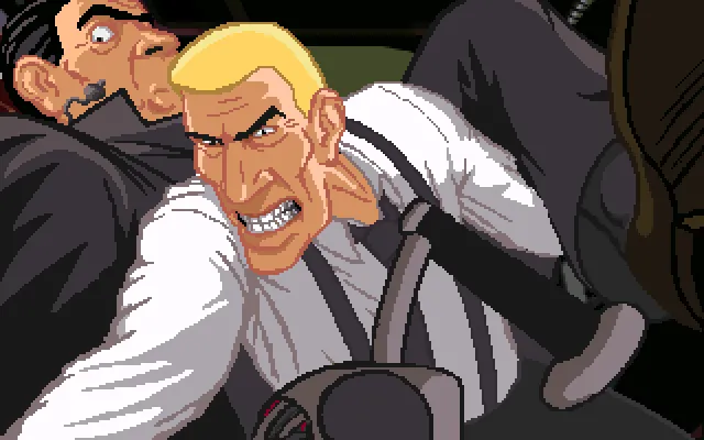 Что касается геймплея, то можете попрощаться с движком SCUMM, точнее с его девятью кнопками и огромным курсором. Теперь у нас есть удобное окошечко, которое включает в себя: руку для открывания/трогания предметов и надирания задниц; ногу для пинания задниц и предметов; глаза для обзора на предметы; язык для разговоров и других способностей человеческого рта. Несмотря на довольно большое кол-во действий, довольно понятно, когда нужно использовать какое-то из оных. Вот, например, мужик не хочет открывать дверь, что нужно делать? Правильно, пнуть ногой, выбив дверь к чертям. Нет таких моментов, когда вы не знаете, что делать и для этого перебираете все предметы в инвентаре на каждый активный объект. Кроме обычной квестовой части в игру включили драки на мотоциклах между другими бандами. Честно говоря, без них было бы намного лучше. Мало того, что они иногда сложные (отобрать специальные очки – это еще та проблема), так еще и резко перебивают сюжет, дав нам подраться с кем-нибудь досками. Но все же, игра не об этом.