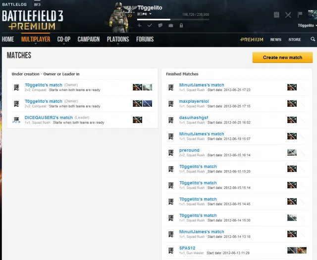 Функция "Matches" будет доступна для всех игровых платформ: ПК, Xbox 360 и PS3. Если у вас в управлении есть арендованный выделенный сервер Battlefield 3, значит вы сможете создать свой матч, между командами своих друзей или в рамках какого-либо турнира.