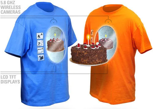 Магазин ThinkGeek начал продажу футболок с "работающими" порталами в груди. Иллюзия настоящих "порталов" достигается с помощью беспроводного соединения, камер и экранов. Запчасти описаны на сайте, стоят 99,99 долларов.