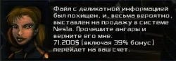Название совсем не сочетается с самой работой. Да и описание не совсем точно дает понять, что же на самом деле предстоит делать. Летим в указанную систему, облетаем все станции и находим в продаже нужный пакет документов.