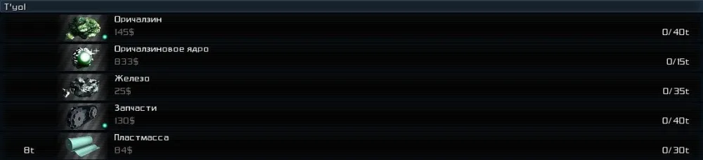 Астероиды, содержащие железо и оричалзин, встречаются повсеместно, даже 15 ядер при желании можно добыть за полчаса или же просто купить, 12,000 кредитов сумма не большая. В любом случае, T'yol необходимо иметь каждому.
