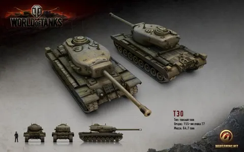 Галерея «Мира танков» пополнилась рендером американского тяжелого танка Т30