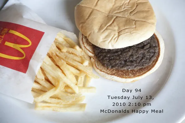 Как сообщают британские СМИ, детский комплект Happy Meal, состоящий из гамбургера и картофеля фри, 54-летняя художница из Нью-Йорка купила 10 апреля этого года. Она начала наблюдать за едой из "Макдоналдса" и фотографировать происходящие с ней изменения.