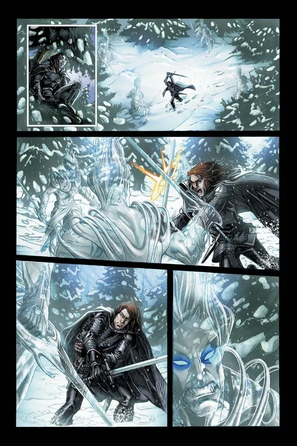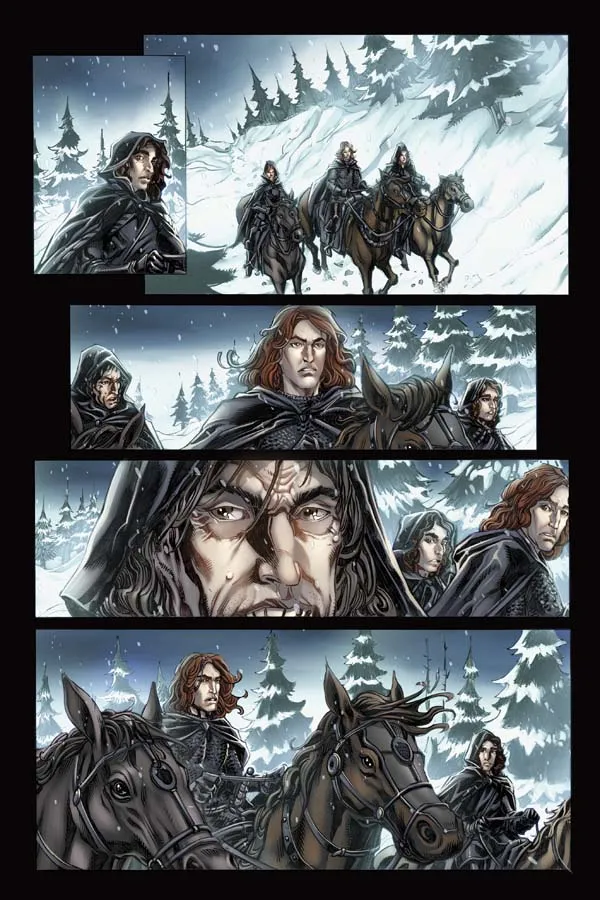В сентябре 2011 года начнутся продажи комикса-адаптации саги Джорджа Мартина «Песнь Льда и Пламени» издательства Dynamite Entertainment. Всего запланировано 24 тома по 29 страниц на «Игру престолов». Оригинальный текст адаптировать взялся давний друг Джорджа Мартина Дэниел Абрахам. Рисунок — Томми Паттерсон, а иллюстраторами обложки первого тома стали Алекс Росс и Майкл С. Миллер. Последний был художником комикса по приквелу основного цикла «Межевой рыцарь». В первый том войдут пролог и первые три главы.