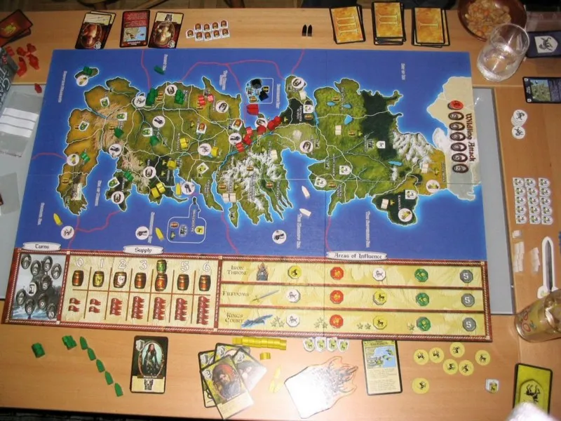 "Игра Престолов", как и многие игры FFG, получила красочное стильное поле с картой Вестероса и множеством треков, фиксирующих изменения политической ситуации. Не станут сюрпризом для пользователя ни качественные игровые карты с портретами персонажей саги Мартина, ни многочисленные жетоны на плотном картоне. Слегка удручает то, что войска и корабли в игре стали обезличенными деревянными фишками, тем более, что мы уже видели пластиковые армии в StarCraft и World of Warcraft. Ну, зато не запутаешься.
