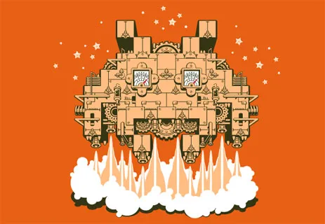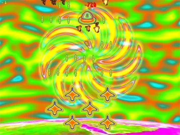 Понятия не имею, над чем инженеры из другой галактики мудрили все двадцать лет, но ясно одно. Конкретных улучшений, направленных на повышение разрушительной силы и стойкости консервной банки, на которой мы путешествуем, не заметно. Те захватчики, что выжили в кромешном аду Space Invaders отрапортовали о самых популярных формах летательных аппаратов по версии землян. Поэтому для пущего страха для очередной попытки была сконструирована летающая тарелка по образу и подобию своих собратьев в План 9 из открытого космоса. Круглая форма и обтекающие изгибы повысили аэродинамические характеристики объекта, что в вакууме не так и важно, зато после проникновения в земную атмосферу может сыграть решающую роль. Кабина сделана из прозрачного материала и представляет из себя сегмент сферы. Таким образом алиены избавились от ограничений по углу обзора, однако эта деталь негативно повлияла на сохранение структурной целостности. Таким образом, ракеты и снаряды, выпускаемые земным флотом, всего за три попадания полностью уничтожают гордость межгалактического тарелкостроения. Вооружение, имеющееся на борту позволяет четырежды выстрелить по противнику, после чего наступает краткая перезарядка. Инопланетные пушки разрывают вражеские корабли в мгновение ока, однако человеческая армада включает в себя неисчислимые полчища кораблей. Поэтому все потуги разрушительного арсенала зеленокожего брата по разуму - что мертвому припарка.