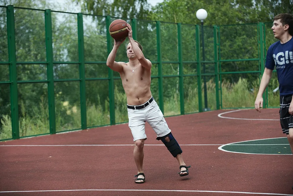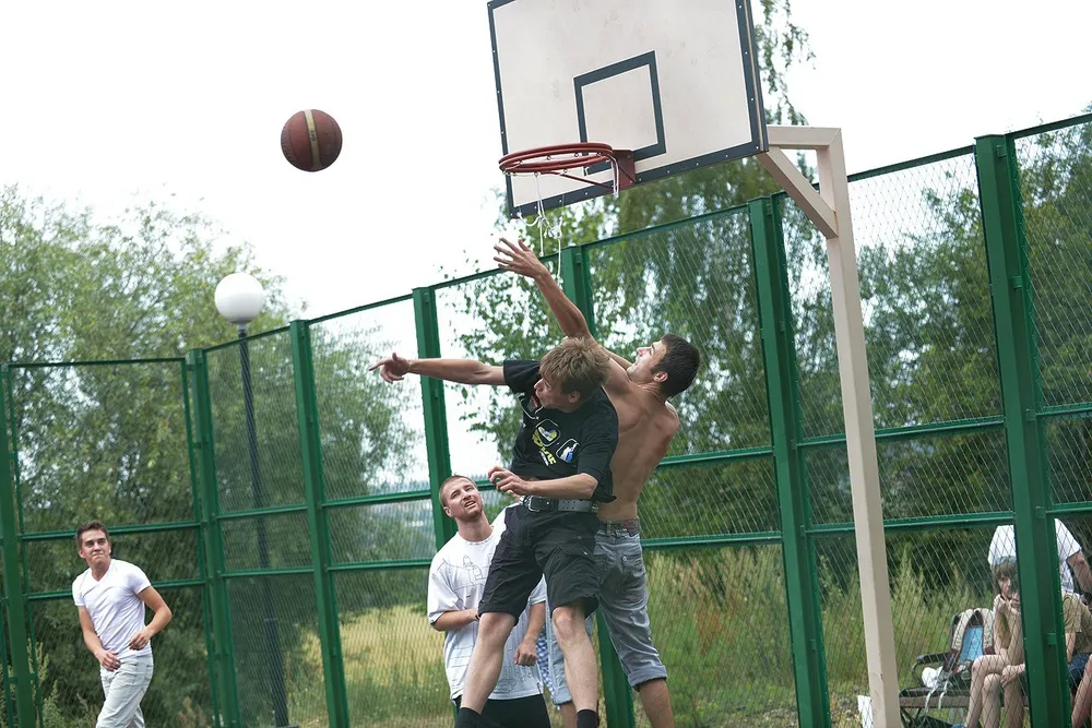 "А сейчас я сделаю ласточку и закину этот мячик в корзину!"