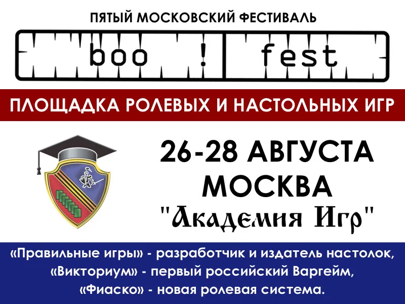 В рамках пятого московского фестиваля вольных издателей boo!fest 26-28 августа Академия игр проводит свое мероприятие.