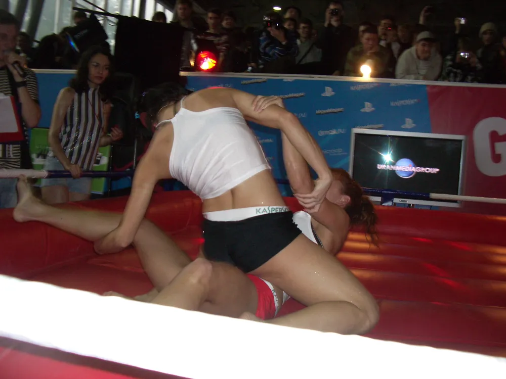 Перед каждым конкурсным мочиловом на ринг выходят "специально обученные терпеть и причинять боль" девушки (ну или как то так их красиво представлял дяденька с микрофоном), которые разогревают мужскую публику, бьют по разным местам, таскают за волосы, душат, гнут и даже раздевают друг друга!