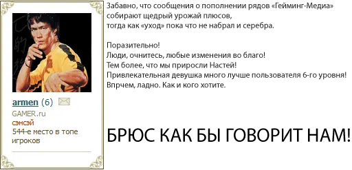 Косвенно, к солнцеликому относится ещё одно знаменательное событие. Клан топикстартеров, прошу прощения, копипастеров, вышел на первое место в Специальных Олимпийских играх на Gamer.ru!