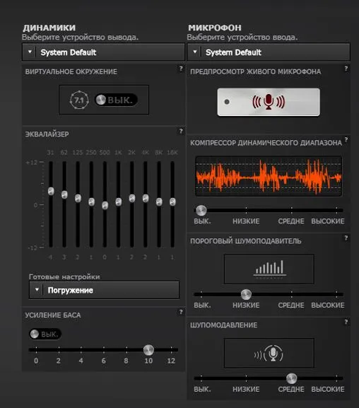 Так могла бы выглядеть программа для настройки работы гарнитуры